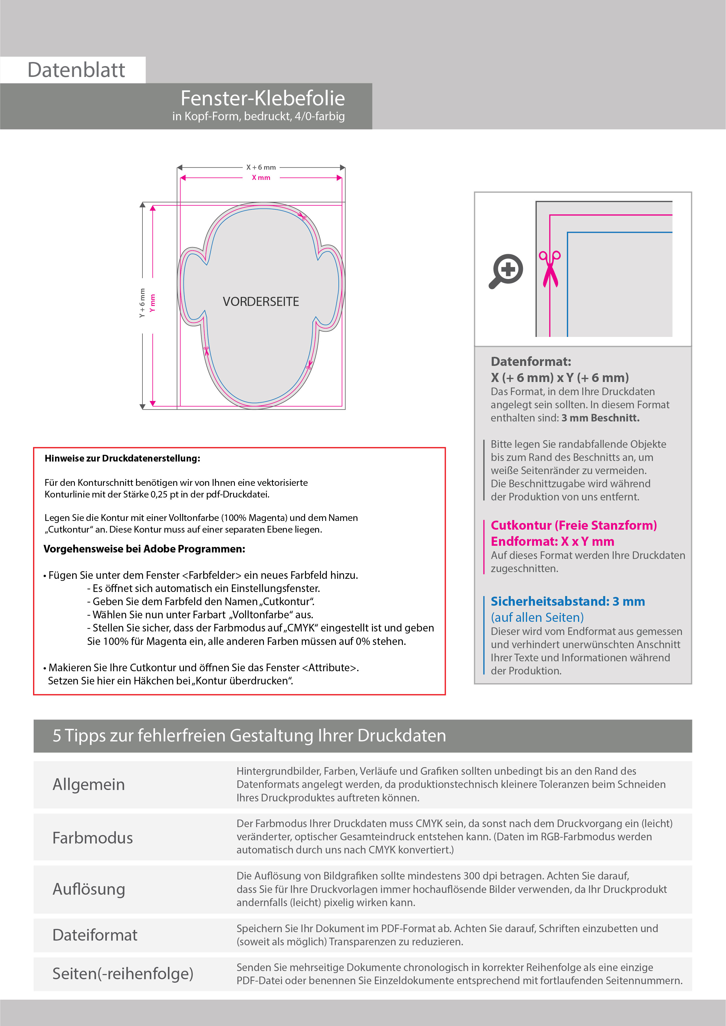 Fenster-Klebefolie 4/0 farbig bedruckt in Kopf-Form konturgeschnitten