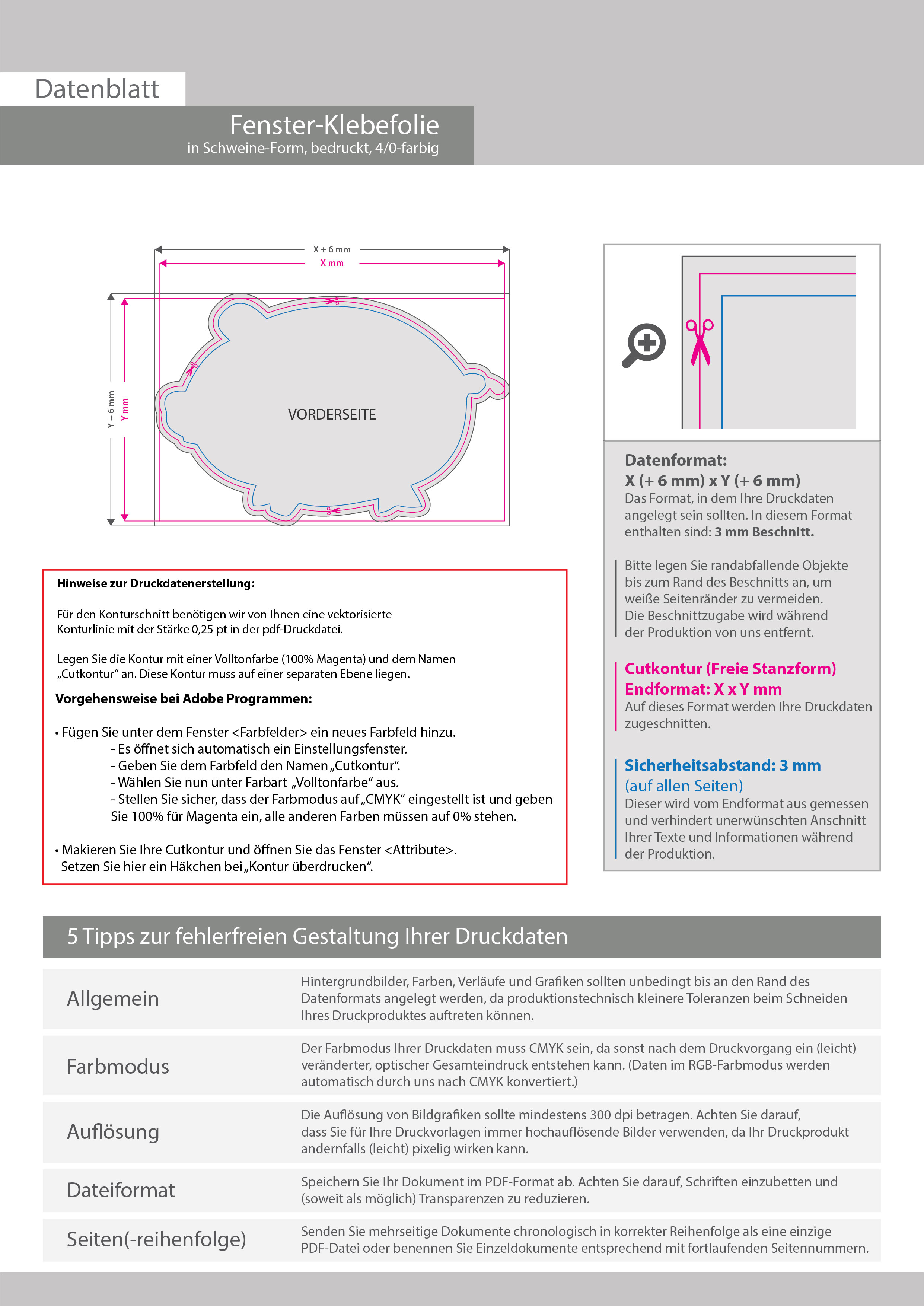 Fenster-Klebefolie 4/0 farbig bedruckt in Schwein-Form konturgeschnitten